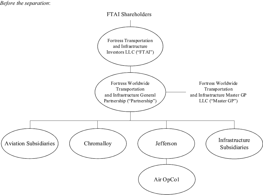 ○ | The Partnership will divide into Aviation Holdco LLC (which we refer to as “Aviation Holdco”) and Infrastructure Holdco LLC (which we refer to as “Infrastructure Holdco”), with Infrastructure Holdco being a wholly-owned subsidiary of Aviation Holdco. Pursuant to the division, Aviation Holdco will be allocated the Aviation Subsidiaries, and Infrastructure Holdco will be allocated FTAI Infrastructure, the Infrastructure Subsidiaries and any other assets and liabilities related to the infrastructure business; |